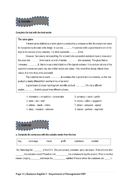 _______ the customers need. Promotion is to ___________the customers to buy the product. Price is one that
