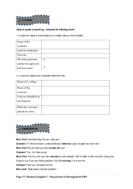 1. A customer comes to a travel agency to complain about a recent holiday.