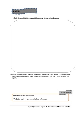 1. Reply the complaint letter on page 24. Use appropriate expressions/language.