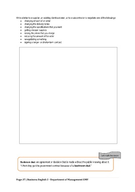 Write a letter to a supplier, an existing client/customer, or to a subcontractor to negotiate one of the followings: