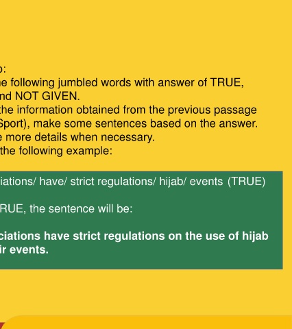 Some/ sport associations/ have/ strict regulations/ hijab/ events (TRUE)