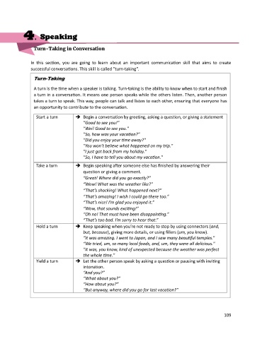 Take a turn ➔ Begin speaking after someone else has finished by answering their