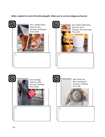 Write a caption for each of the following gifts. Make sure to use the strategy you learned.