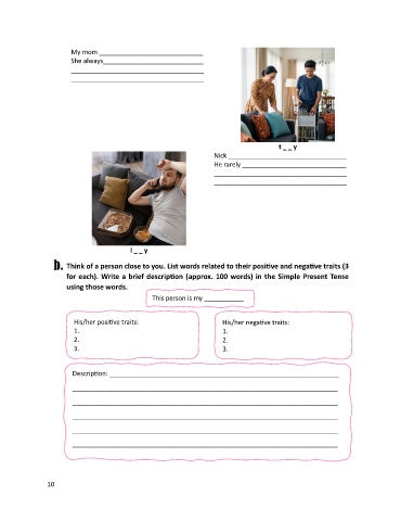b. Think of a person close to you. List words related to their positive and negative traits (3