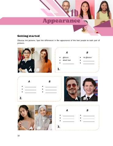 Observe  the  pictures.  Spot  the  differences  in the  appearance of  the  two  people  in  each  pair of