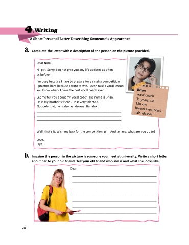 b. Imagine the person in the picture is someone you meet at university. Write a short letter