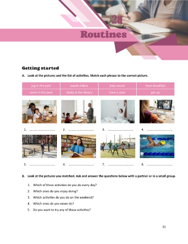 A. Look at the pictures and the list of activities. Match each phrase to the correct picture.