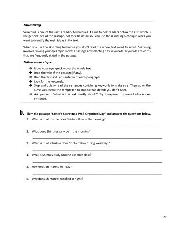 b. Skim the passage “Shinta’s Secret to a Well-Organized Day” and answer the questions below.