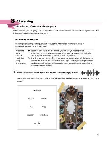 Predicting ➔ The first few sentences of a conversation or presentation will help you to