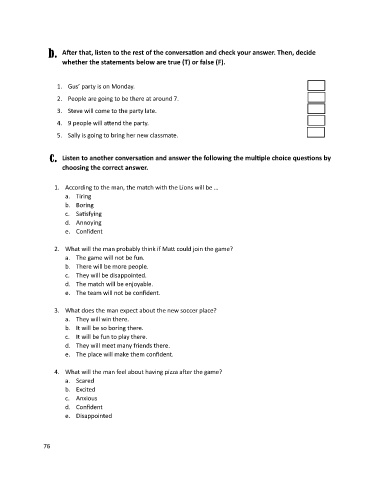 b. After that, listen to the rest of the conversation and check your answer. Then, decide