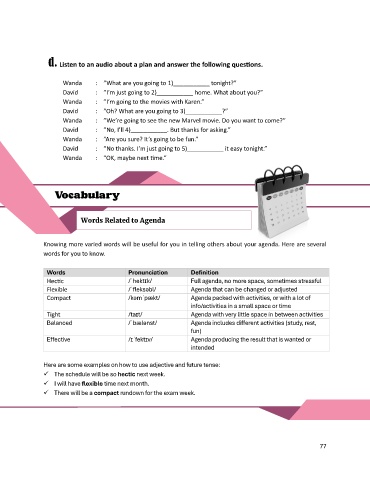 d. Listen to an audio about a plan and answer the following questions.