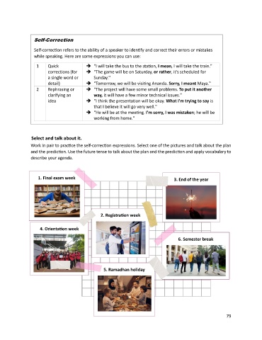 Work in pair to practice the self-correction expressions. Select one of the pictures and talk about the plan
