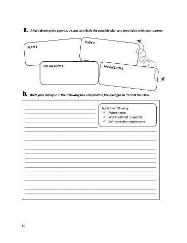 a. After selecting the agenda, discuss and draft the possible plan and prediction with your partner.