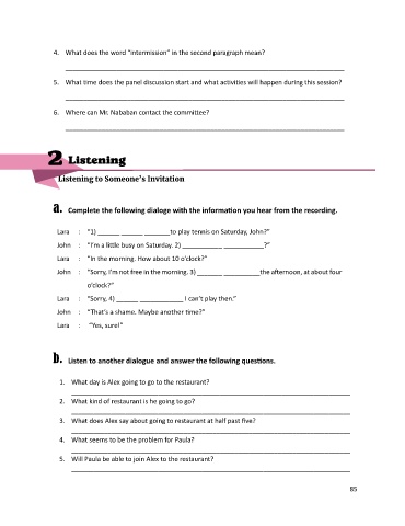 b. Listen to another dialogue and answer the following questions.