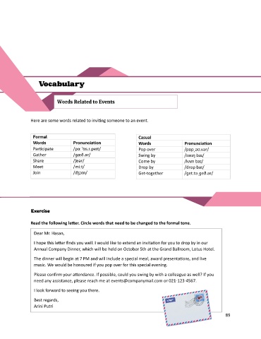 Here are some words related to inviting someone to an event.