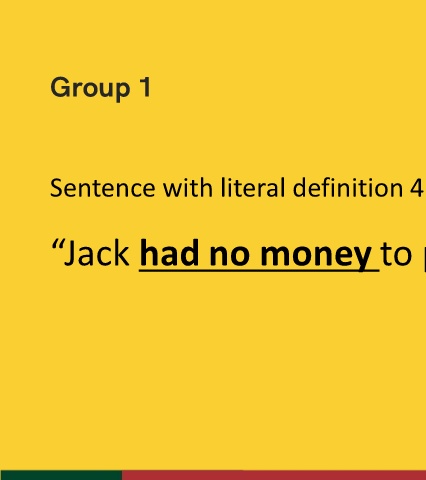 Sentence with literal definition 4: “Jack had no money to pay his rent”