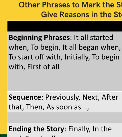 Sequence: Previously, Next, After Interrupting Phrases: suddenly,