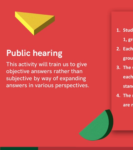 1, group 2 as representative 2, and 1 student as spoke person.
