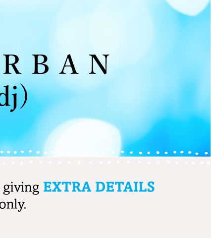 S U B U R B A N (Adj) Describe the word by giving EXTRA DETAILS only.
