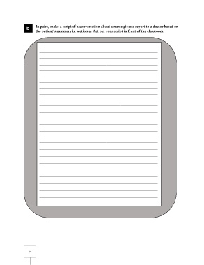 b In pairs, make a script of a conversation about a nurse gives a report to a doctor based on
