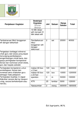 dan numerasi Peningkatan Workshop/IHT Peningkatan Kualitas Peningkatan kompetensi untuk makan 60 box 120 box 30000 3600000