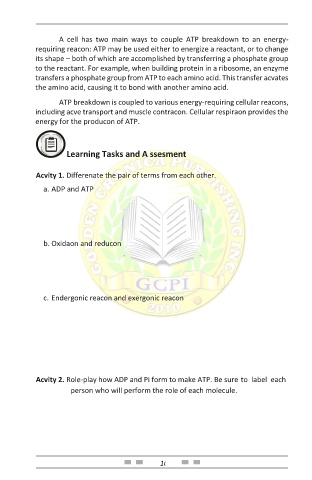 requiring reacon: ATP may be used either to energize a reactant, or to change