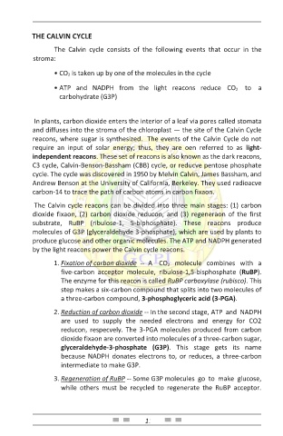 1. Fixation of carbon dioxide -- A CO2 molecule combines with a