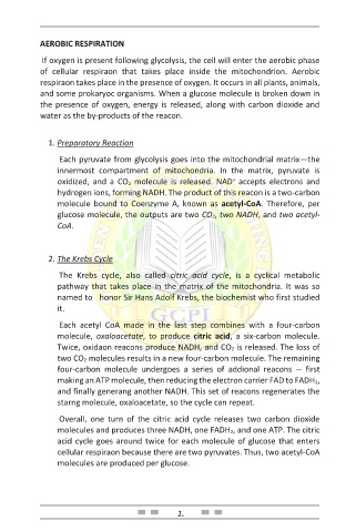 of cellular respiraon that takes place inside the mitochondrion. Aerobic
