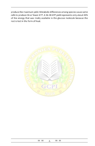 cells to produce 36 or fewer ATP. A 36-38 ATP yield represents only about 40%
