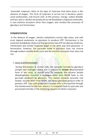 absence of oxygen. This form of respiraon is carried out in bacteria, yeasts,