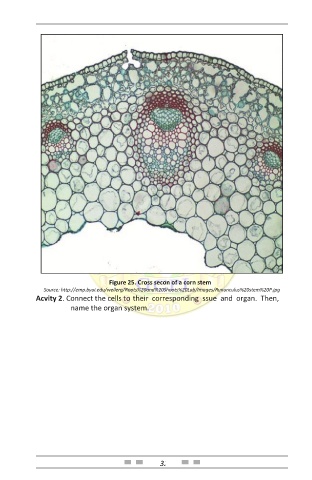 Figure 25. Cross secon of a corn stem Source: http://emp.byui.edu/wellerg/Roots%20and%20Shoots%20Lab/Images/Rununculus%20stem%20P.jpg Acvity 2. Connect the cells to their corresponding ssue and organ. Then, name the organ system. 32