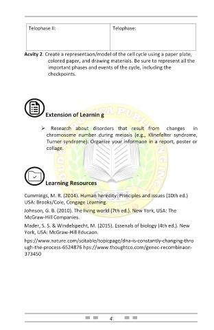 Acvity 2. Create a representaon/model of the cell cycle using a paper plate,