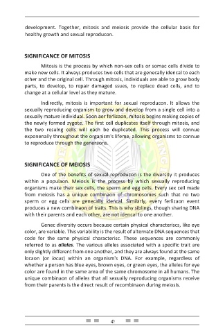 Indirectly, mitosis is important for sexual reproducon. It allows the