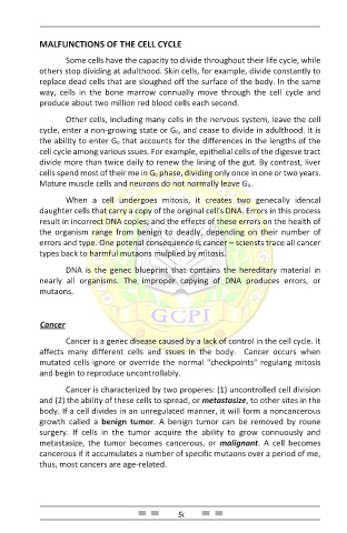 body. If a cell divides in an unregulated manner, it will form a noncancerous