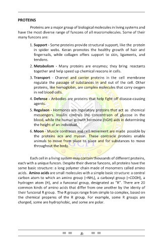 2. Metabolism - Many proteins are enzymes; they bring reactants