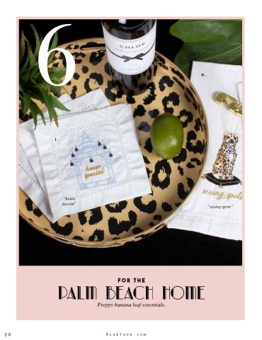 6 H . I . “house special” “seeing spots” A . for the PALM BEACH home Preppy banana leaf essentials. 28 8oaklane.com
