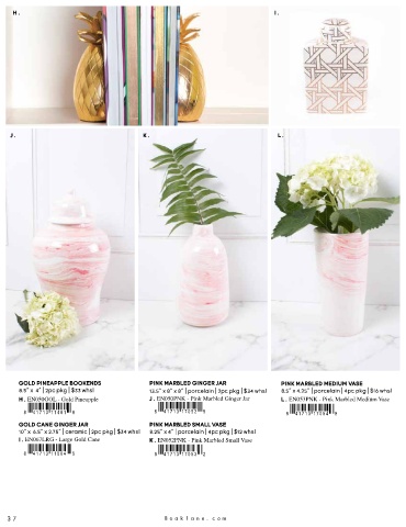 H . EN050GOL - Gold Pineapple J . EN050PNK - Pink Marbled Ginger Jar L . EN053PNK - Pink Marbled Medium Vase