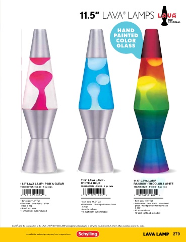 LAVA ® , and the configuration of the LAVA LITE ® MOTION LAMP are registered trademarks of Schylling Inc. in the U.S.A. and in other countries around the world. LAVA ® , and the configuration of the LAVA LITE ® MOTION LAMP are registered trademarks of Schylling Inc. in the U.S.A. and in other countries around the world.