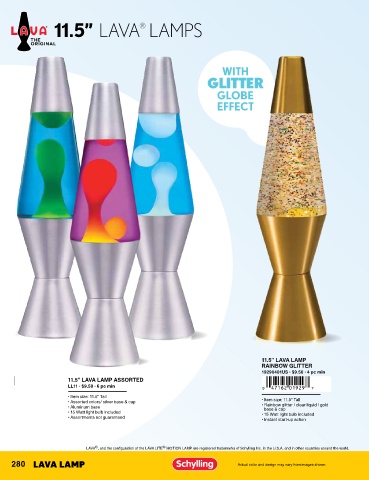 LAVA ® , and the configuration of the LAVA LITE ® MOTION LAMP are registered trademarks of Schylling Inc. in the U.S.A. and in other countries around the world.