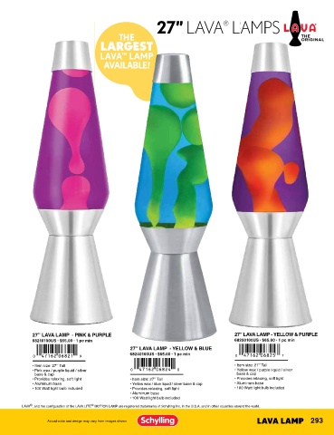 LAVA ® , and the configuration of the LAVA LITE ® MOTION LAMP are registered trademarks of Schylling Inc. in the U.S.A. and in other countries around the world. LAVA ® , and the configuration of the LAVA LITE ® MOTION LAMP are registered trademarks of Schylling Inc. in the U.S.A. and in other countries around the world.