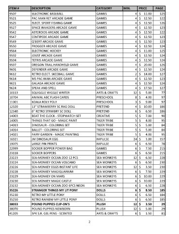 ITEM # DESCRIPTION CATEGORY MIN. PRICE PAGE