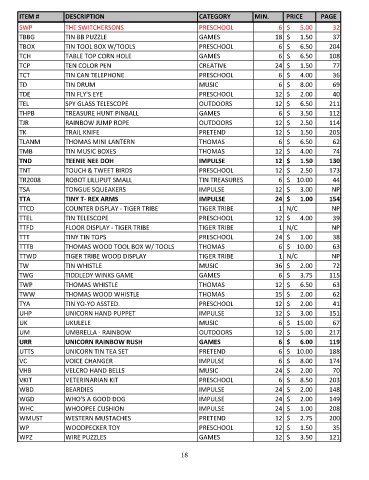ITEM # DESCRIPTION CATEGORY MIN. PRICE PAGE