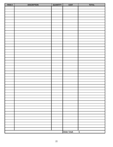 ITEM # DESCRIPTION QUANTITY COST TOTAL Order Total: $ 22