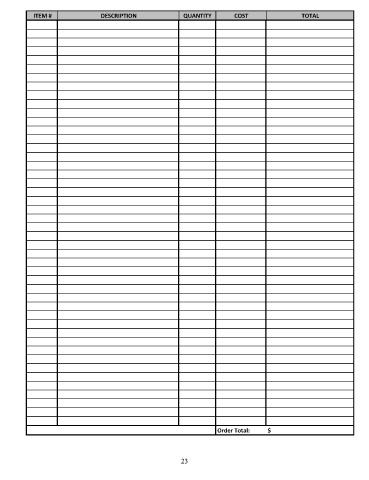 ITEM # DESCRIPTION QUANTITY COST TOTAL Order Total: $ 23