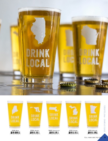 STATE OF MINE – PINT GLASSES 122248 Maine 187506 Maryland 188418 Massachusetts 187513 Michigan 187510 Minnesota TOLL FREE: 800.742.1766 189