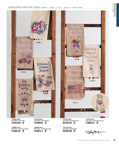 EMBROIDERED LINEN DISH TOWELS 003-00750 | 018-00675 | 20" x 26" | Cotton, Linen | Machine-washable STITCH ART PATRIOTIC