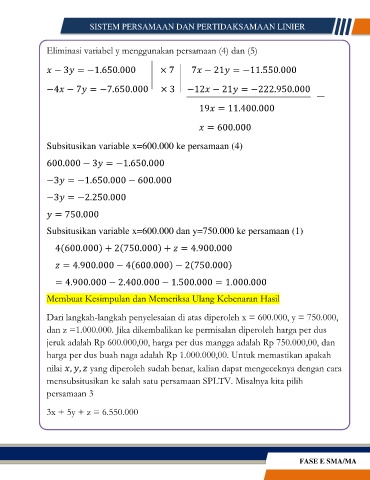 Dari langkah-langkah penyelesaian di atas diperoleh x = 600.000, y = 750.000,