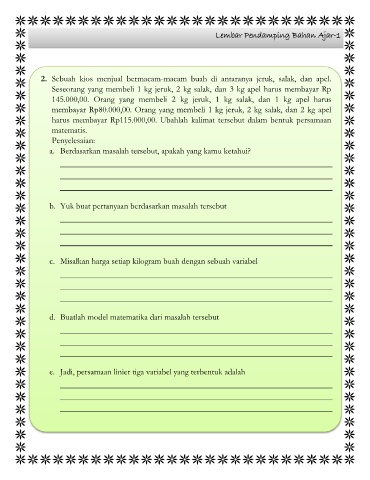 145.000,00. Orang yang membeli 2 kg jeruk, 1 kg salak, dan 1 kg apel harus