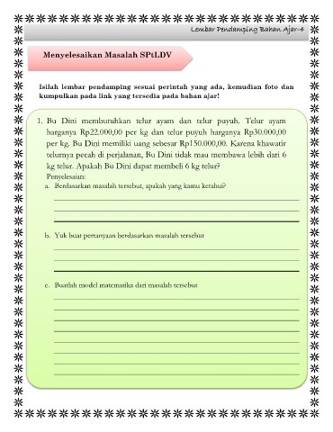 per kg. Bu Dini memiliki uang sebesar Rp150.000,00. Karena khawatir