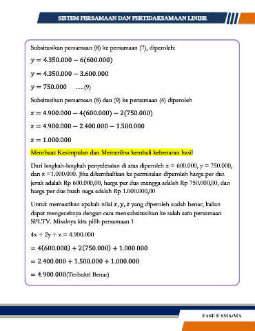 Dari langkah-langkah penyelesaian di atas diperoleh x = 600.000, y = 750.000,